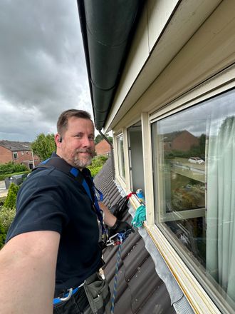 Na dat alles grondig verwijderd is en goed schoongemaakt voorzie ik het kozijn van een mooie nieuwe strakke laag. klaar voor jaren plezier. RAL9001